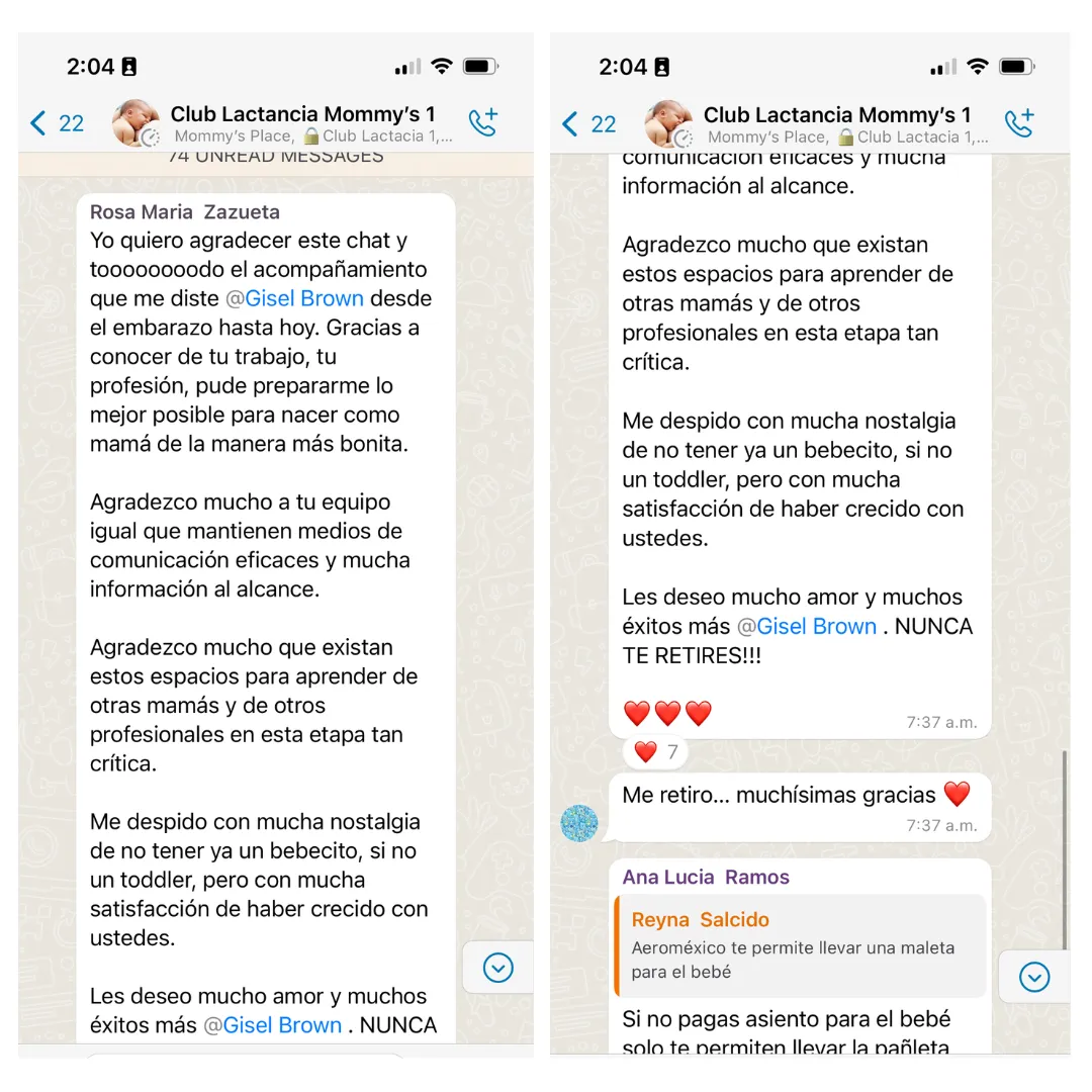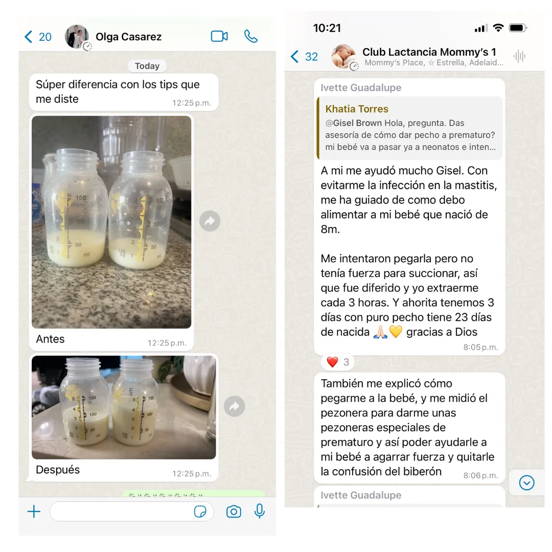 Hola! mi nombre es Gisel Brown soy educadora perinatal con especialidad en lactancia materna, doula y madre de 3 hijos, cuento con más de 17 años de experiencia ayudando a mujeres en periodo de lactancia.
